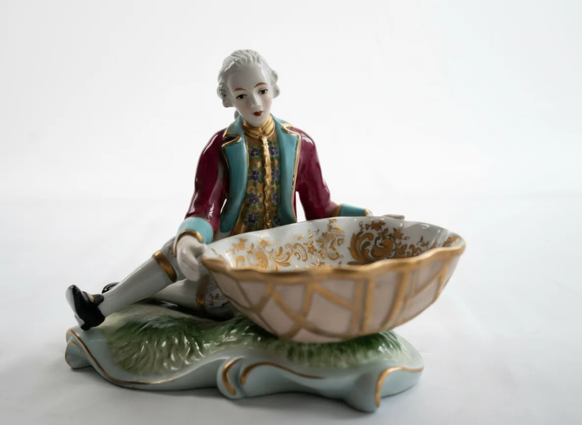 Autor desconocido (S XX). Porcelana policromada. Hombre sujetando cenicero