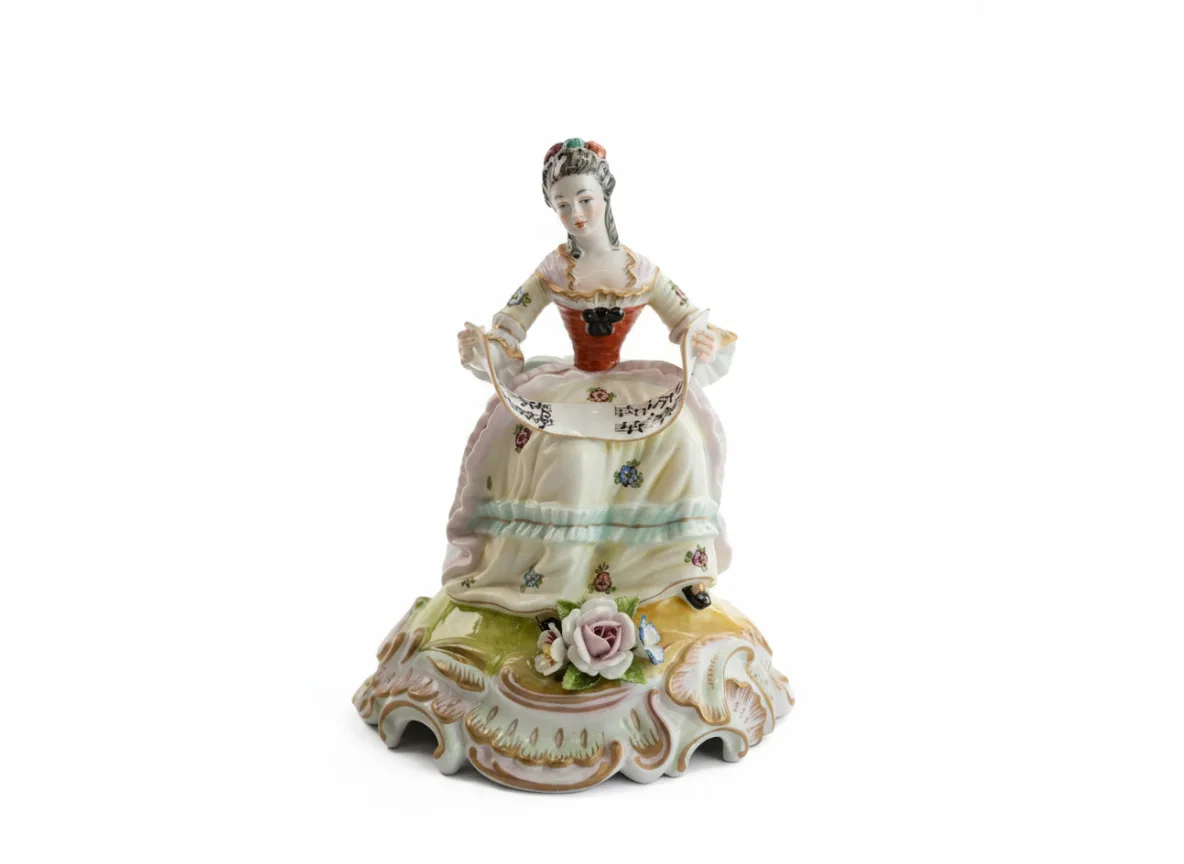 Porcelanas Álvarez (S XX). Porcelana policromada. Mujer leyendo partitura
